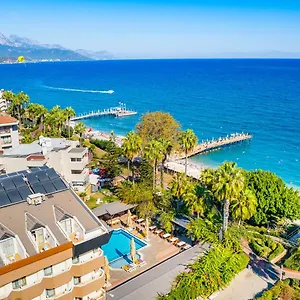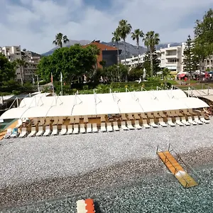 Dieses schöne Hotel befindet sich im beliebten Stadtviertel von Kemer. Am 550 Meter entfernten kleinen Strand finden die Gäste Lounge-Sessel und Sonnenschirme.